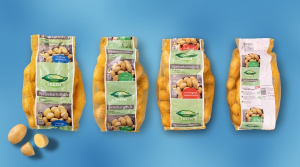 For several months now, the BIO SONNE potato nets have been significantly more resource-friendly. This means that Nuremberg-based food discounter NORMA has taken another step in the company's sustainability offensive. The potatoes are already offered in CLAF® nets. With 23 grams of plastic per square meter, fewer resources are required in the production of the nets for the 1.5 kilogram organic potatoes than with conventional manufacturers (55g/sqm). In addition, the material impresses has outstanding recyclability.
