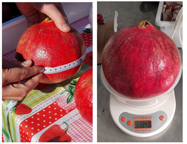 The Wonderful pomegranate harvested on October 28th 2021 at Sole Italia in Nociglia (Lecce), boasts a circumference of 48.2 cm and weighs 1,347 grams.