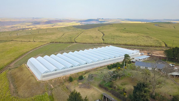 The Mt Elias greenhouse from the air, showing the sugarcane fields for which KwaZulu-Natal is known