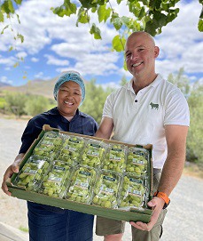 Right: Lucricia Visagie, packhouse manager, and Ryno Palm of Rooted Global Fruit