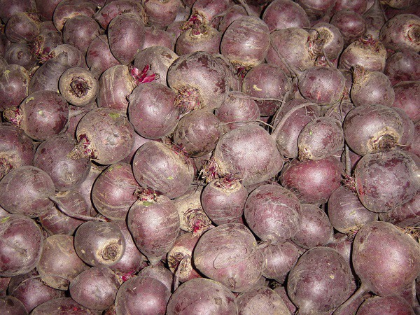The red beet grower says there is a market movement toward more processed products like shredded, cubed, cooked, and vacuum-packed beets. "Those items sell well," he says. Raw beetroot that people have to peel and cook themselves is gaining popularity again. Large beets are usually destined to be sold raw.
