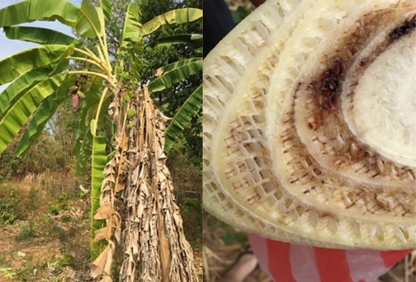 Panama disease symptoms in banana caused by infection with the soil-inhabiting fungus, Fusarium oxysporum (Image: Jay Anderson of the Centre for Organics Research).