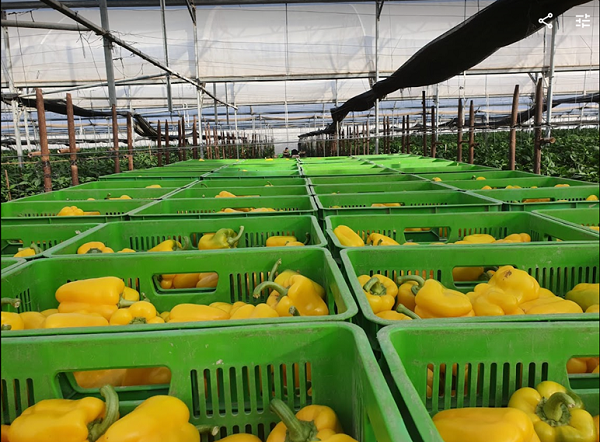 In Israel, export bell peppers are cultivated on between 50 and 60 hectares in the Arava desert. Most are grown on small-scale family farms located in a region with a unique climate. Israeli bell peppers are known for their distinctive sweet flavor, thanks to the area's salty air. "These bell peppers are looking good these days too," adds Pos.