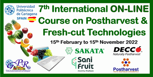 The "7th International on-line Course on Postharvest & Fresh-cut Technologies" will be offered by the Universidad Politécnica de Cartagena in Spain since 15th February 2022. This course gathers 43 prestigious instructors from the 5 Continents, 23 Countries and 33 Universities/Research Centers.