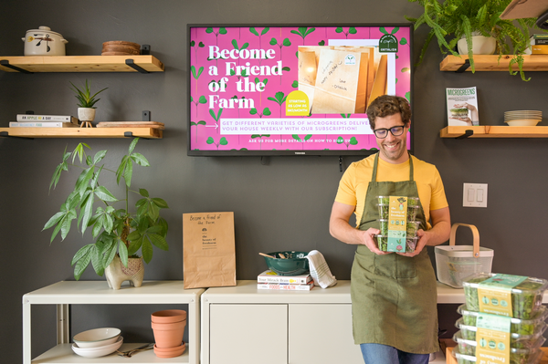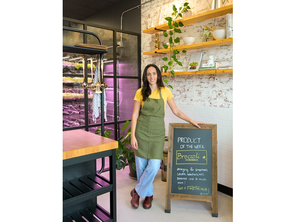 As Carina and Alvaro explain, Ortaliza is unique in that the company has a farm-storefront model through which microgreens are grown on-site and sold through a storefront at the front of the building. According to Carina, this is the first of its kind in Canada, as most vertical farms distribute their product primarily through wholesale or B2B models.