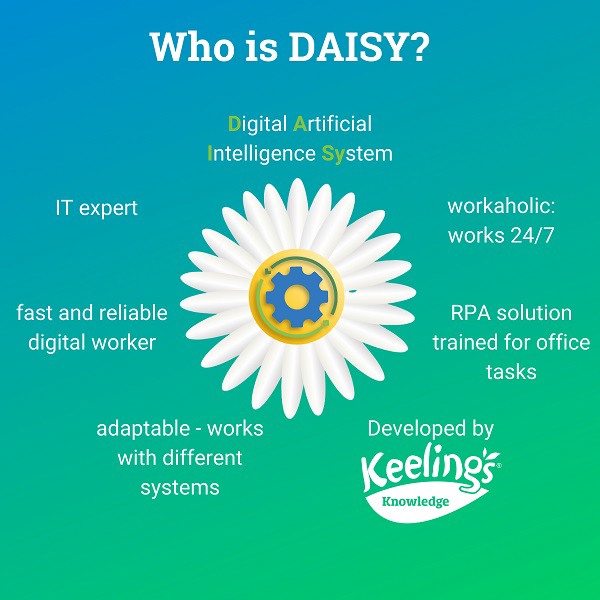 Keelings International is fully committed to the process-oriented automation of repetitive, error-prone, time-consuming business processes, or RPA. "RPA truly adds value. Our Daisy system already has some 20 users throughout Europe. It's resulting in fewer errors and is saving time and money."
