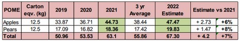 For the 2022 crop, the estimate on apples and pears is 67.3mm, which is a 7 percent growth on total volume.