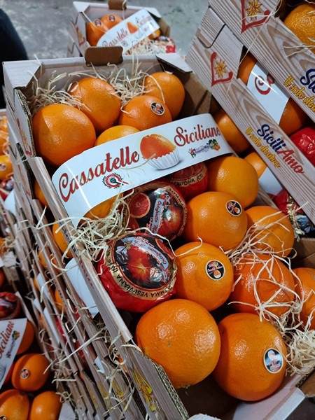 Cassatelle Siciliane is a new brand that was established last year by Michele Sodano, a young trader and representative of Ortofrutta Mele. It commercializes crates of Tarocco Lempso and Tarocco tradizionale blood oranges, very esthetically appealing due to the color of their peel, and decorated with a customized strip and an orange placed in a paper case at the center.