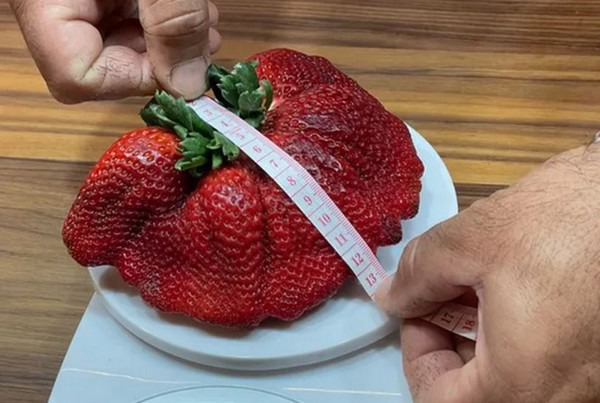 The world’s heaviest strawberry, weighing in at 289 g (10.19 oz), was grown by Ariel Chahi, in Israel. It is bigger and heavier than your average mobile phone,18 cm long, 4 cm thick and 34 cm in circumference.