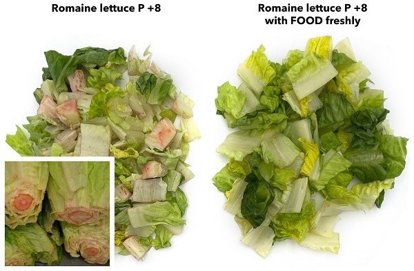 A quick dip in a Food freshly solution prevents discoloration of fresh-cut salads for up to eight days. Not only do salad processors not have to use any special packaging to achieve this effect, the solutions will not alter the taste of the lettuce, and perform a lot better than common fruit acids.