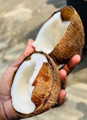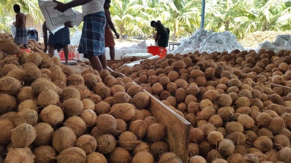 Sachin Beri is Head of Sales and Marketing at the company. He explains about the company's harvesting procedures: "When we harvest our coconuts, we do not just go and harvest the fallen coconut, which are more mature. We carefully select and pick from the tree. We harvest for export to European and other international markets when the coconut is ripe enough. We check each and every coconut for cracks, sprouts, fungus, if they're premature, over-mature, and for weight. In addition, we also weigh final bags while loading so the possibility of bad nuts and underweight bags is reduced and accuracy goes up to 98-99%. This also saves costs for our end customers."