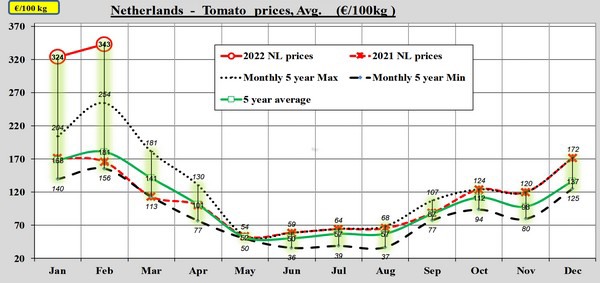 Tomato crops usually come into production in Northwest Europe soon. The question is exactly what volumes will be released and how high prices will be. The wildly fluctuating energy prices are constantly changing the situation.