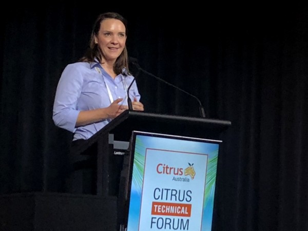 Photo: Claire Fitchett speaking at the recent Citrus Technical Forum