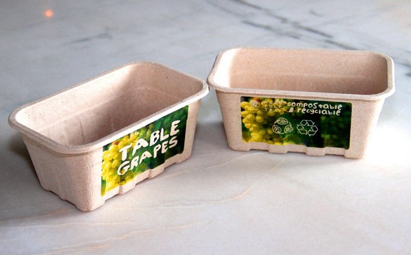The regular (non-printed) punnets are available with many different top seal lidding options. “We were able to show them with home compostable film and home compostable netting to show customers the different options.” [insert picture of punnet with cherry tomatoes]