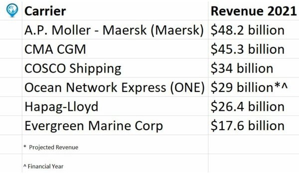 Maersk, CMA CGM in driving seat for highest earning carriers in 2021