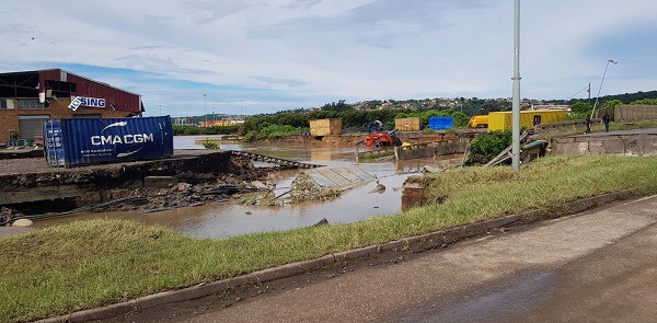 Flood damage to Bayhead Road, which gives access into Durban Container Terminal
