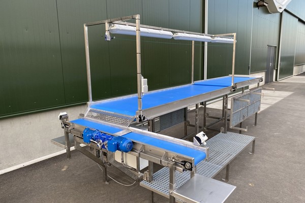 "These arrive on a conveyor belt and are separated on a second fast-rotating conveyor belt. Finally, there are filling belts at the end that fill the boxes. The products are handled a little, so we're now working on developing a robotic arm for the palletizing," explains John.