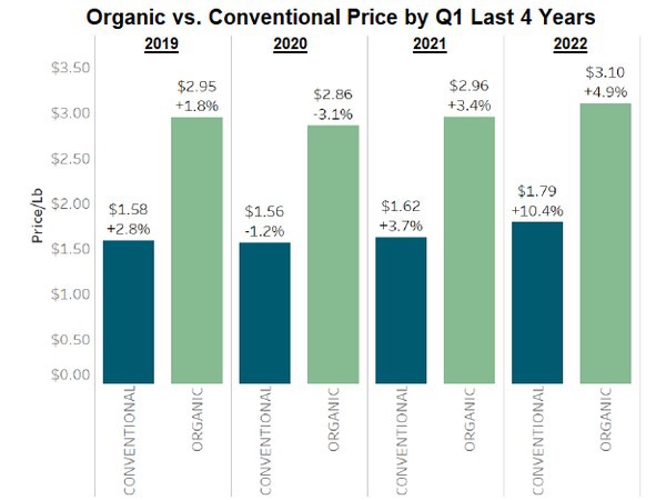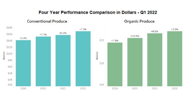 Total organic fresh produce sales for the first quarter of 2022 increased by 4 percent from the same period last year, topping $2.3 billion for the quarter, according to the Q1 2022 Organic Produce Performance Report released exclusively by Organic Produce Network and Category Partners.