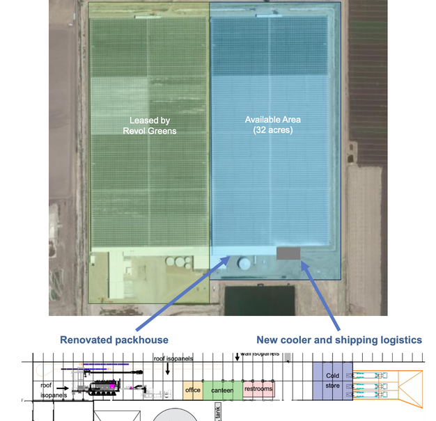 Thirty-two acres of the 64-acre greenhouse are available for lease. The other 32 acres in the facility are currently leased by or under option to Revol Greens, which has its own office, packhouse, cooler, and loading docks. As co-tenants of the greenhouse, the new tenant and Revol Greens will share use of and responsibility for certain facilities such as CHP facilities, backup diesel generators, heat systems, and roadways.