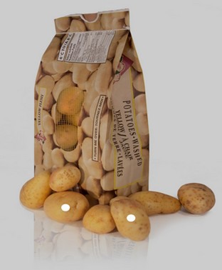 For fruits, one of the more popular packaging options is small paper bags with handles. These are used for grapes, tomatoes, potatoes and other fresh products. The paper holds, because it is made of ‘wet-strength’, as such it can take a little water. An alternative option is waterproof paper, which can resist more water.