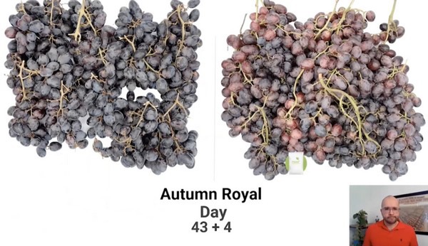 Mario Cervantes, director of business development–agtech at Hazel Technologies discussed trials focused on postharvest technology--seen here on Autumn Royal grapes.