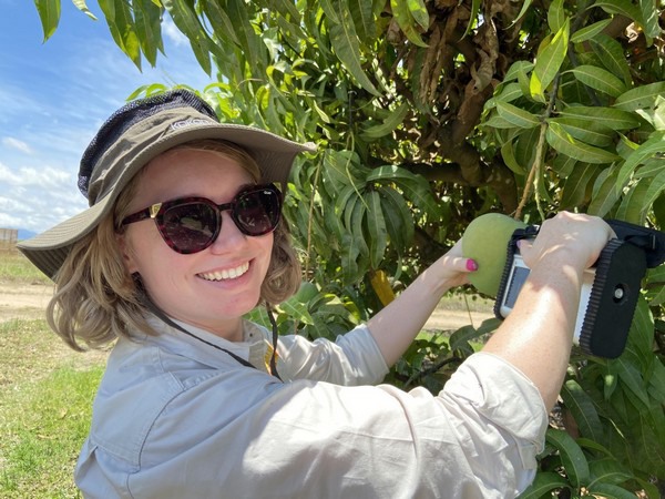 Photo: AMIA Industry Development Officer Paige Liebich conducts NIR testing on mangoes to determine dry matter; one service that aids growers in their decision to pick.