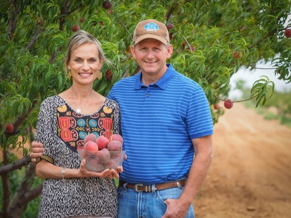 Jamey Vogel (right) says the Texas peach season is just starting now because winter started and ended late.