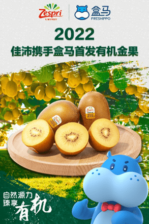 In 2022, when the Zespri kiwifruit season begins, Zespri Organic SunGold is officially launched on Hema and other platforms. As a very important strategic partner of Zespri, Hema has become the No. 1 retail channel for Zespri Organic SunGold, accounting for nearly 24%. In the future, Zespri will work with Hema to promote organic food, provide high-quality products to consumers, pay attention to the protection of the environment, jointly advocate a more sustainable new way of life, and undertake corporate social responsibility to realize the common vision of both parties.