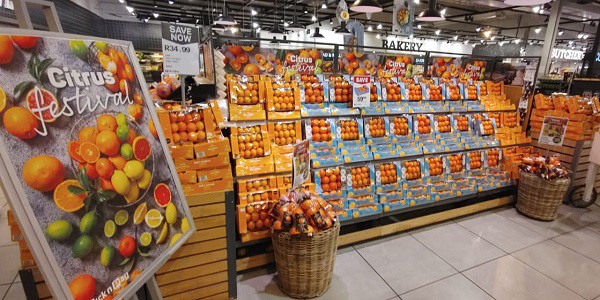 Blue boxes of mandarins on display with Pick n Pay's other citrus at the Constantia branch, Cape Town (photo supplied by Pick n Pay)