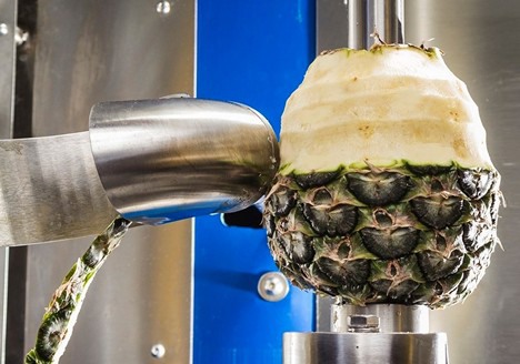 "The melon and pineapple peeler is available in three models according to the production capacity required. Models PL1D, PL2D and PL4D can process 6 to 24 fruits/minute."
