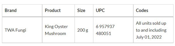 Kam Ding Investment Ltd. is recalling King Oyster Mushrooms sold under the TWA Fungi brand because of possible contamination with Listeria monocytogenes.