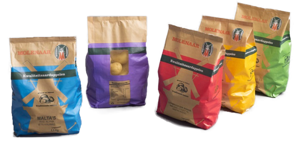 The Dutch potato and vegetable wholesaler, Molenaar Aardappelen en Groenten Groothandel, has been supplying potatoes in paper packaging since 2016. "We wanted to innovate, and, at that time, the world's call to banish plastic was getting louder and louder. There was also concrete demand for it,″ says Felix Molenaar. "So, we decided to switch to all-paper packaging. It was quite something, but demand gradually grew, and we're quite proud of that. It's mostly greengrocers that carry our packaged potatoes. They want to distinguish themselves from supermarkets.”
