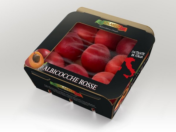 Among the range of Solarelli apricots, the red apricot deserves particular attention, a novelty put forward by Apofruit with the proposal of new varieties with a red-pigmented skin, crunchy and not very acidic with a sweetness greater than 2/3 degrees brix more than other apricots and particularly popular on Northern European markets also for their environmental sustainability and the structure of the packaging that is entirely recyclable in paper.