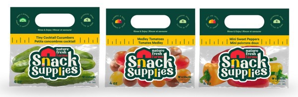 Available in four-ounce varieties, including Medley Tomatoes, Tiny Cocktail Cucumbers, and Mini Sweet Peppers, Nature Fresh Farms Snack Supplies grab-and-go snack bags include a three-pack of collectible stickers, plus a kid-friendly game such as a word search, maze or crossword puzzle with every package.
