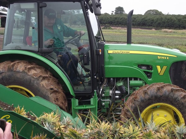 Another stop on the farm tours for delegates was Pine Co. where Faruk Buzaki demonstrated his two machines, which he built and constructed himself with no external assistance or funding. One was a Pineapple Plant Material Collector, which is around 60 per cent finished, he notes that both of his machines are currently prototypes and have yet to be fully tested in the field.