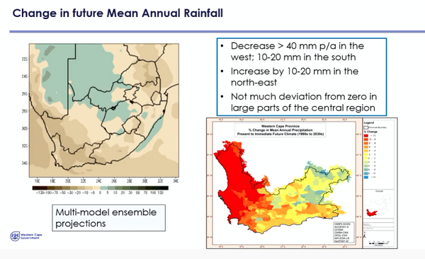 “Probably from the early 2040s and 2050s we’ll be seeing the clear signs coming through and by the middle of the century, 5 or 6 years of every ten years could be moderate drought years in the Western Cape.”