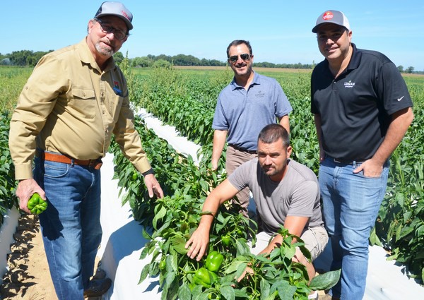 From left to right: Secretary Fisher, Jaime Weisinger (Lipman Family Farms Director, Community and Government Relations), Zach Heiken (ZRH Farms owner and operator), and David Ackers (Lipman Family Farms Manager, Procurement and Sales).