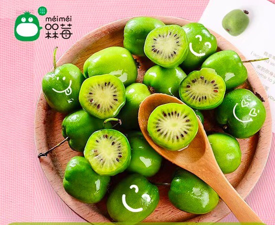 The Kiwiberry, scientific name Actinidia arguta, is only about one-tenth the size of the common kiwi fruit of the same genus. Compared with some similar kiwiberries, Meimei berry-kiwifruit is small in shape and has a hairless skin. It could be in either green, red or purple. Strictly speaking, the kiwiberry is regarded as one of the four major berries (blueberry, raspberry, strawberry, kiwiberry), and the weight of a single fruit is less than 15 grams (about 8 grams on average).