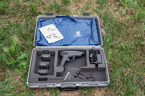 Its ergonomic shape has been specifically designed to make mechanised harvesting easier without tiring the operator; carbon-based polymers are also used, which reduce the weight of the tool to 0,921 kg, battery included.