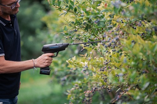 Campagnola has developed an innovative technology that allows a harvester to increase the yield per hour when harvesting blueberries. Basically, a battery-powered, lightweight and handy manual "shaker" is used, i.e. the Starberry MD2. By modulating intensity and duration according to the variety and state of the fruit (first, second or third detachment), up to 25 kg of blueberries can be harvested in the appropriate harvesting box in one hour of work (2022 results obtained, for example, with "cargo" varieties). However, the average for any variety is at least 13-15 kg per hour of work. The average waste is 5-6%.