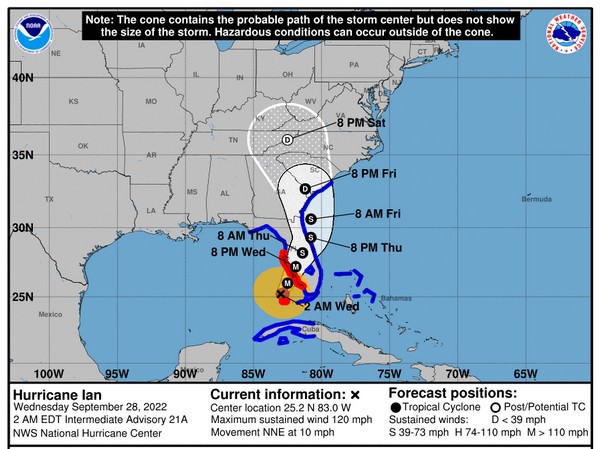 Florida growers and shippers were, as of press time last night, watching, waiting, and preparing for Hurricane Ian. The last reports of the storm, which made its way through Cuba as a hurricane, indicated that it might come through the state as a Category 4 storm starting today. Reports say 2.5 million people were being told to evacuate. The state's citrus and vegetable crops are expected to be hit hardest. Most of Florida's citrus is grown in the lower two-thirds of the state, in the path of Ian. Back in 2017, Florida's citrus industry sustained $760 million in damages following Hurricane Irma.