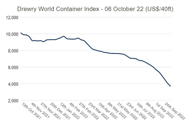 The losses for the Drewry's World Container Index (WCI) keep stretching. The Index lost 8% to end at US$3,688.75 for the week, extending its weekly-loss streak to 32 weeks. The Index has now lost 76% of its gains since the pre-pandemic levels.