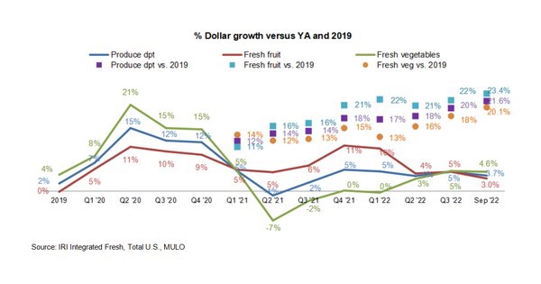“Inflation, drought conditions in the West, Hurricane Ian in the Southeast, record low consumer confidence and more are keeping grocery supply and demand patterns in flux,” Watson noted. “Amid the continued disruption, IRI, 210 Analytics and IFPA remain committed to bringing the industry the latest trends and analysis in fresh produce.”