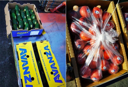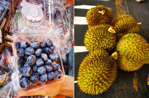 Peruvian blueberries (left) and Vietnamese durian (right)