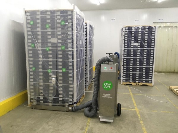 Oxyion Technology, in general, is coupled to cold food processes, is non-invasive and easy to install/operate, allowing it to be key in the control strategy that food plants must incorporate. The new application of Oxyion Technology in the insufflation of pallets stands out, also supporting the control of possible pathogens present in the product or in the packaging.