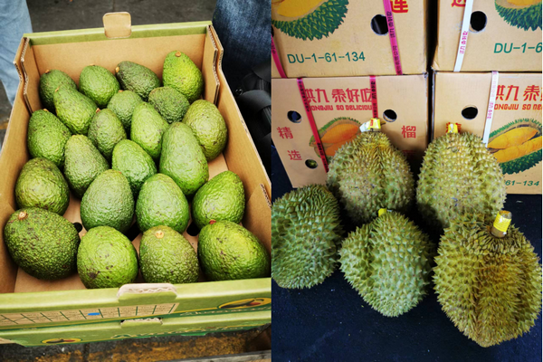 Left: Domestic avocado; Right: Thailand Golden Pillow Durian
