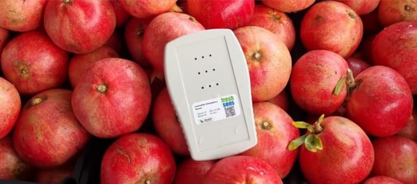 Using an IoT sensor that communicates with the FreshSens AI platform can inform traders about the shelf-life of their stored produce, says FreshSens CEO Baran Baykurt Emiroglu. "I think everybody has bought some fruit and found out that some of them went bad faster than the others in the same bunch. This isn't any different when fruits are sitting in storage. With FreshSens, we combine CA modules with an IoT sensor that predicts the remaining shelf-life of the fruits. We ran trials with 2.000 kilos of cherries last summer, and we now continue with 7.000 kilos of pomegranates. The sensors inside the module monitor and predict the fruit's remaining shelf-life."