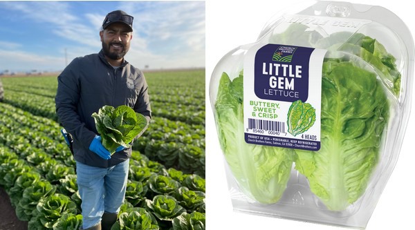 Left: Junior Cristobal of Church Brothers; right: a clamshell of Little Gem lettuce