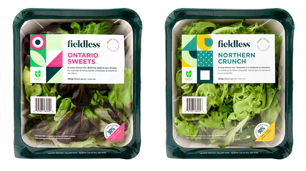 Fieldless salad mixes in the new packaging are now available across Farm Boy stores in Ontario.