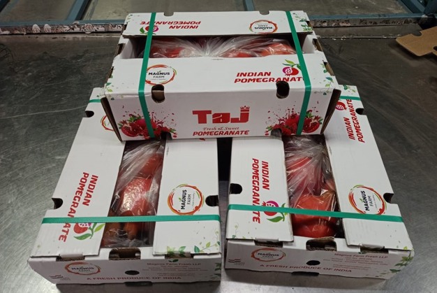 Sarda emphasizes it helps to find markets that accept the situation of the Indian pomegranates in terms of the sizes: “Malaysia, Singapore, and Thailand are promising markets for Indian pomegranates, as pricing and transit time are ambient. Volume wise, Malaysia is more promising considering this year’s trend. Quality and size wise, these markets accept smaller sizes like 12/14/16 as well and have good demand, hence becoming a prime destination for Indian pomegranates. Magnus Farms has achieved strong growth in pomegranates exports to Malaysia, Indonesia, and whole of the Middle East. We have also catered to supermarkets in Thailand and are open to new collaborations.”